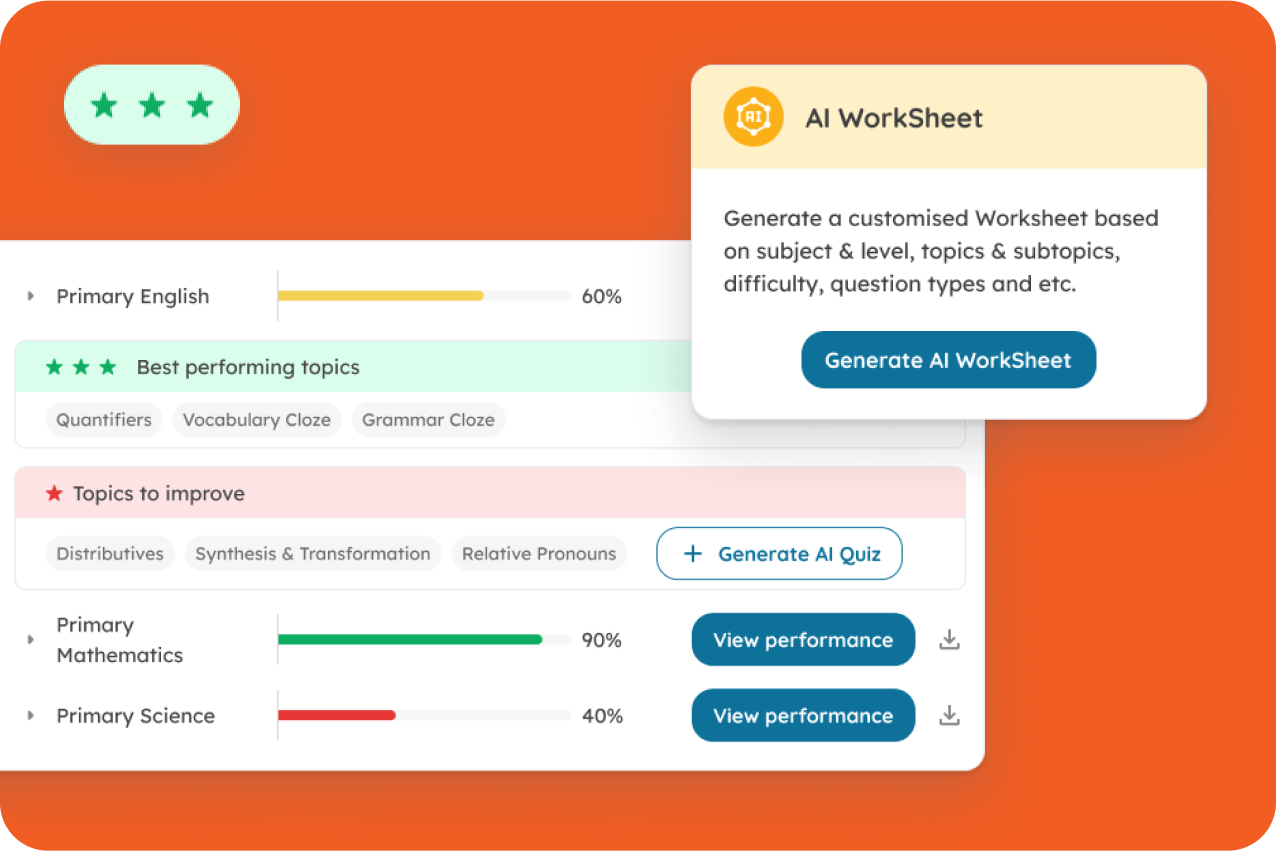 Enhancing every step of the teaching journey with flexible content options, customised and AI worksheets, smart marking, to comprehensive performance analytics. Freeing up your valuable time to engage with learners.